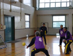 チュックボールは「相手のじゃまをしてはいけない平和なスポーツ」ということで、相手のパスを妨害したり、奪ったりする行為は反則になります。黒部市の委員全員がチュックボール初体験であったので、このルールに慣れるまでは、思わず相手の邪魔をしたり、パスカットをしてしまったりと、みんなの珍プレーに時折笑いもおこりながらゲームを楽しみました。